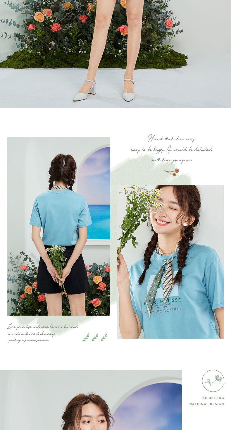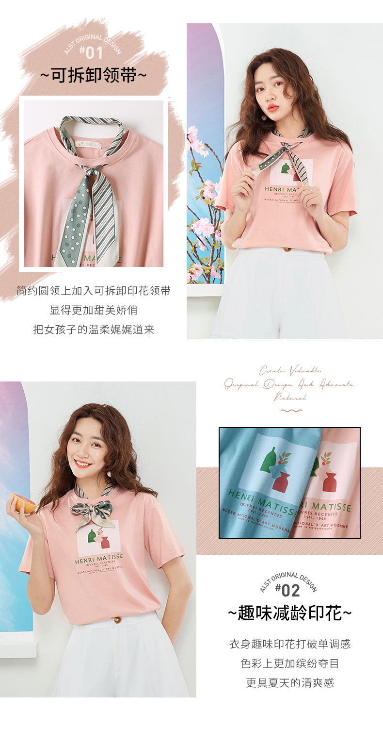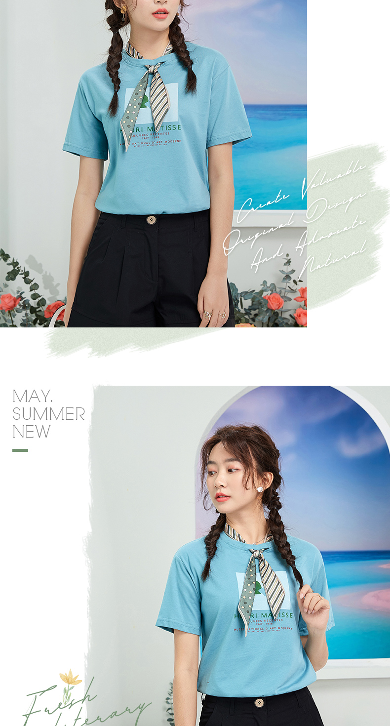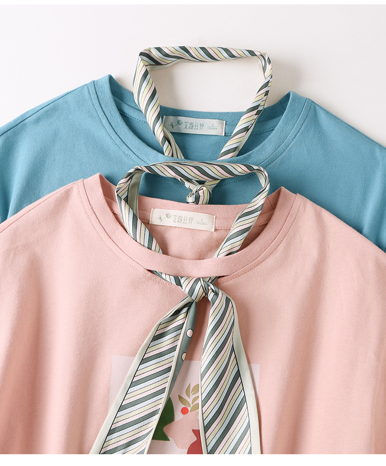 | 商品名称 | 艾路絲婷2020夏装新款韓国版マフラー襟女形上着純綿プリント半袖Tシャツ女性31232薄い青色XL |