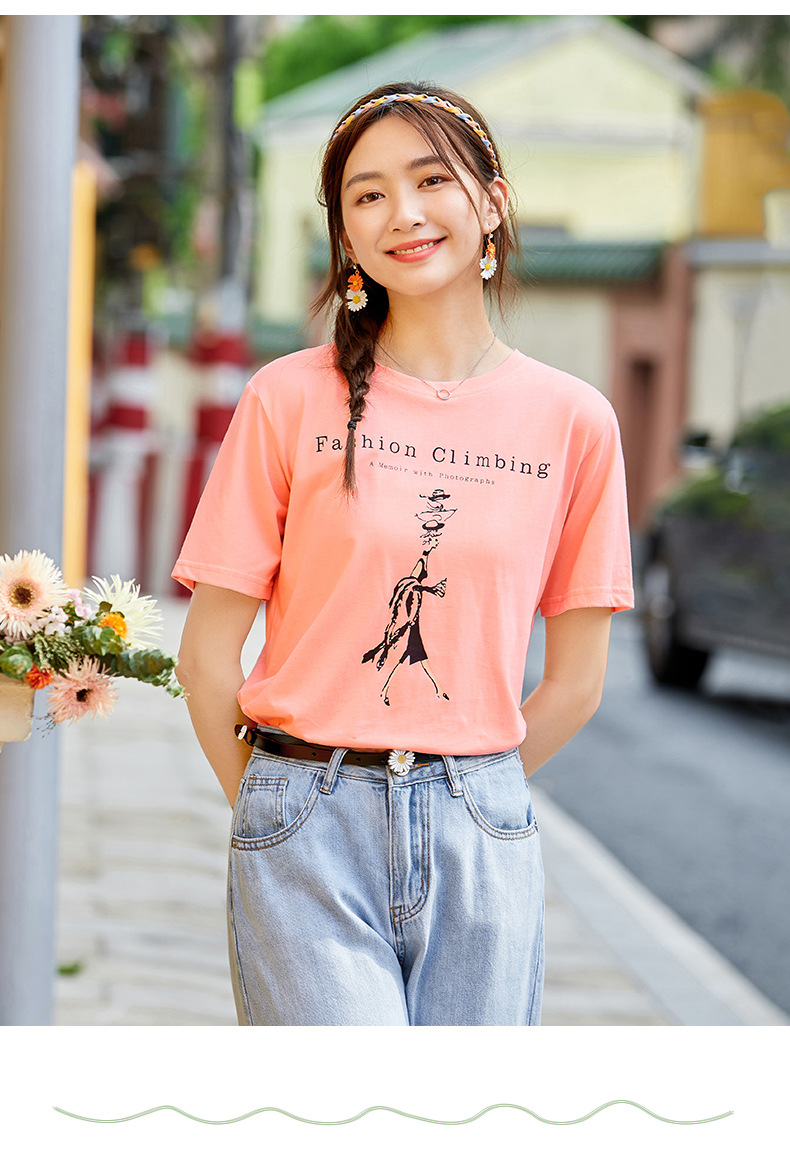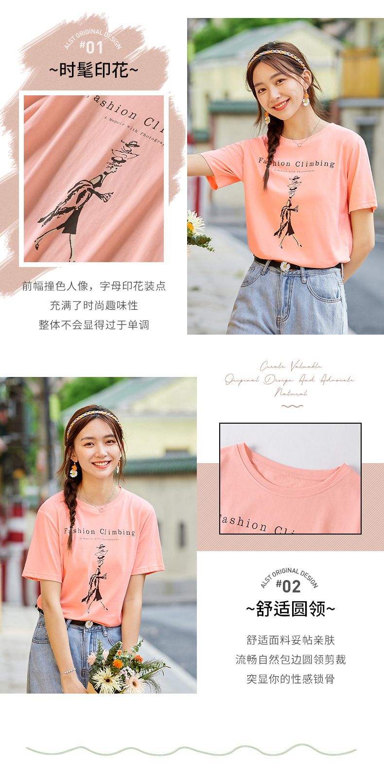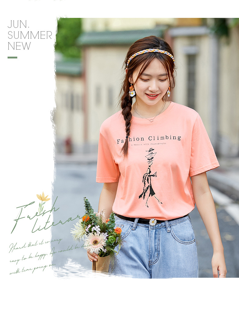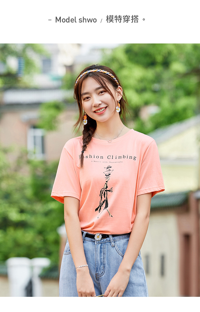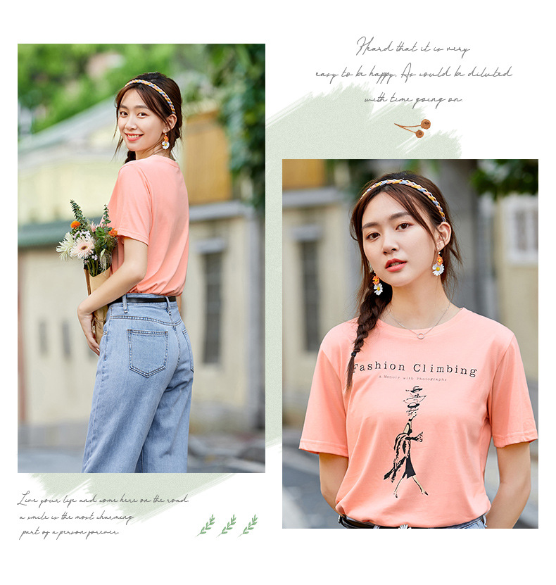 艾路斯婷2020夏装新款韓国版ファッションTシャツ洋風ゆったりトップス純綿プリント半袖Tシャツ女性03644橘ピンクL【写真価格ブランド見積】-京東