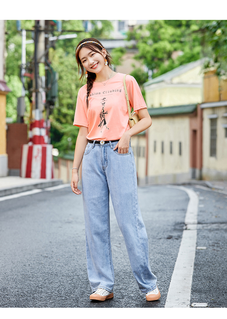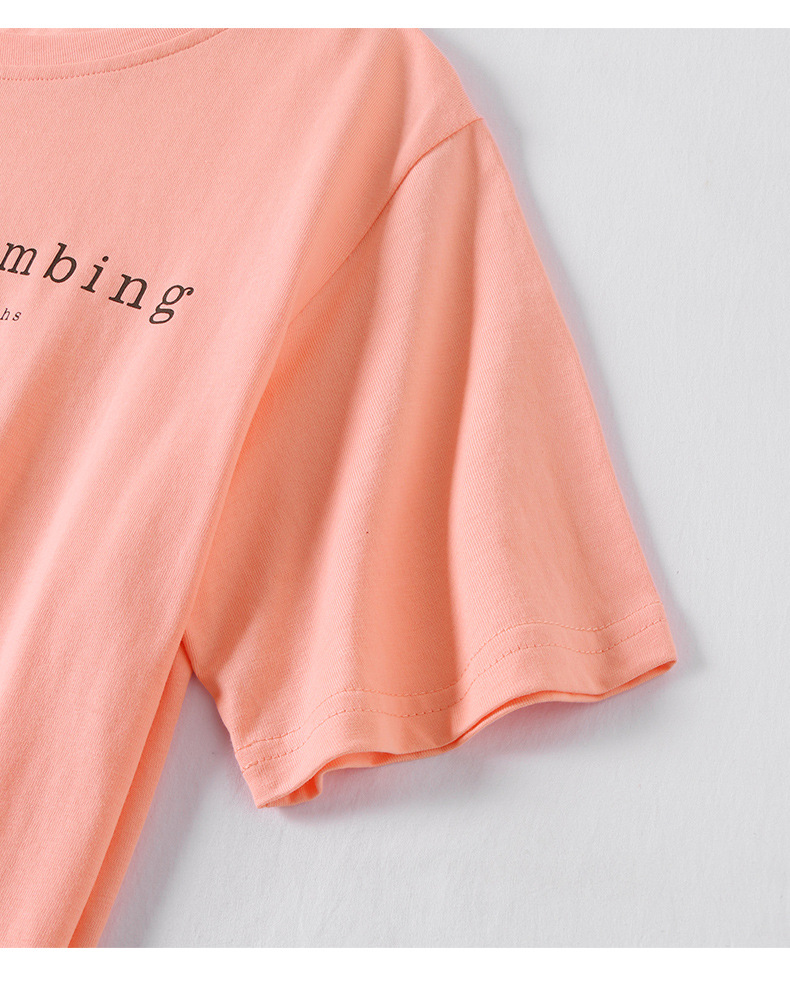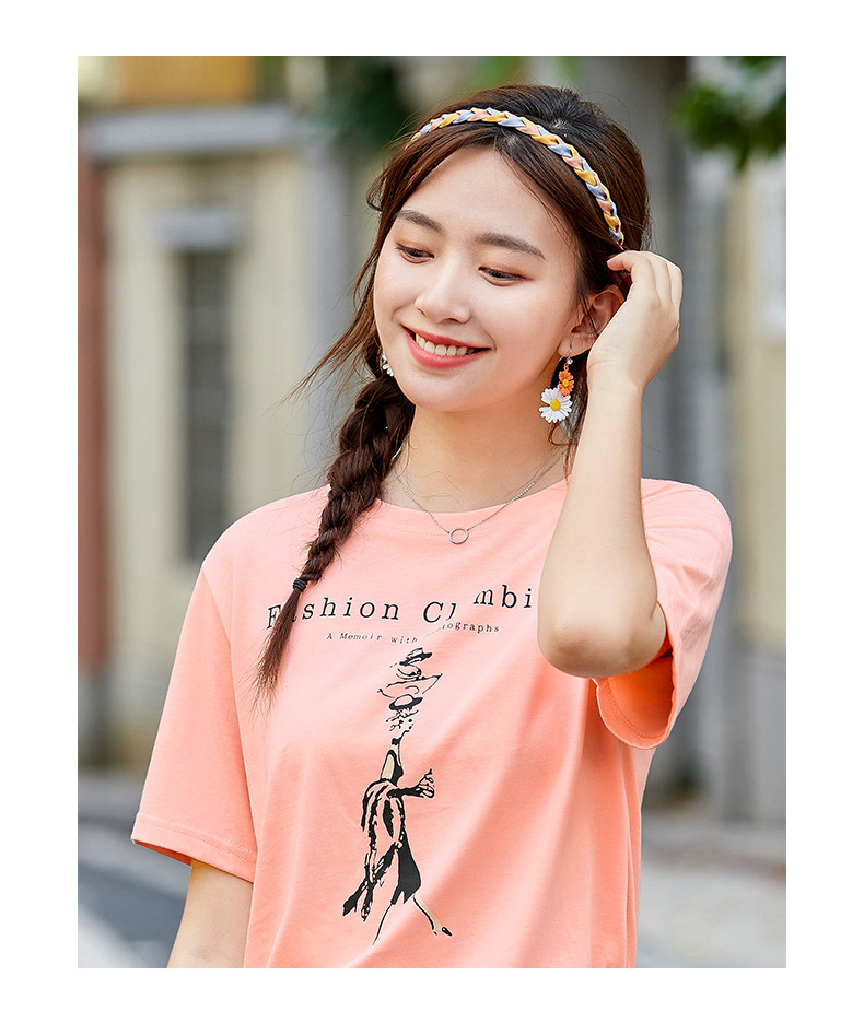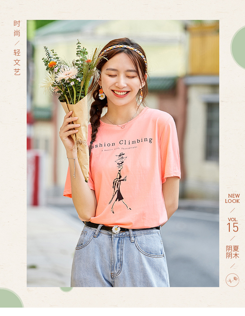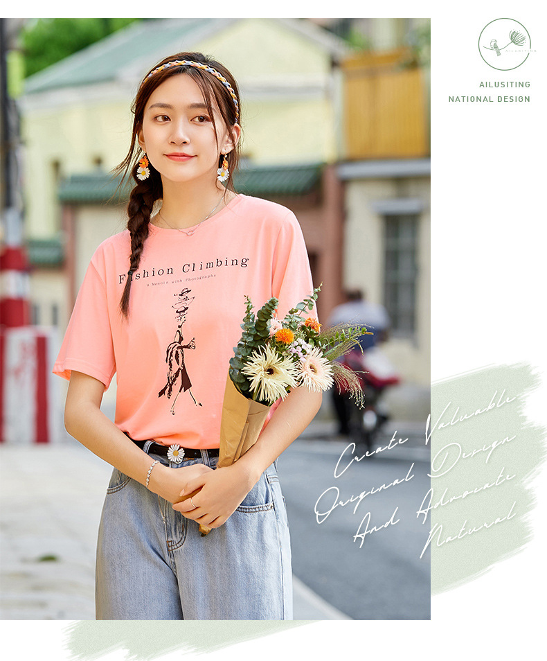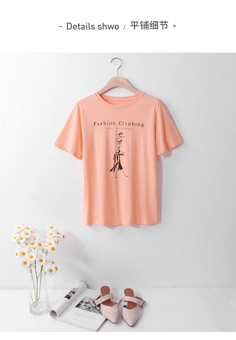 艾路斯婷2020夏装新款韓国版ファッションTシャツ洋風ゆったりトップス純綿プリント半袖Tシャツ女性03644橘ピンクL【写真価格ブランド見積】-京東