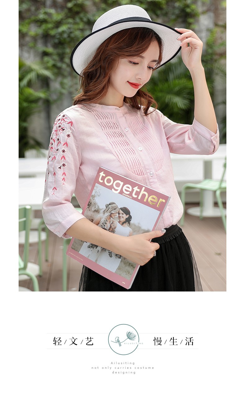 | 商品名称 | 艾路絲婷七分袖刺繍シャツ女性2020新型秋装韓版気質上着スタンドカラーカジュアルシャツCS 5442ピンクXL |